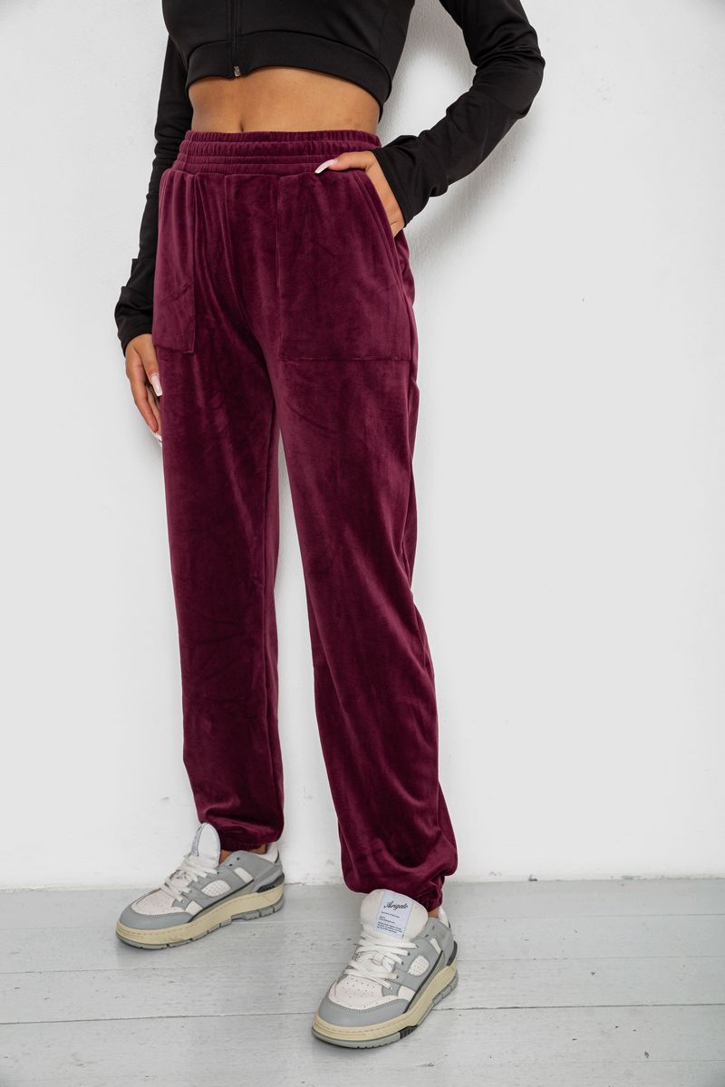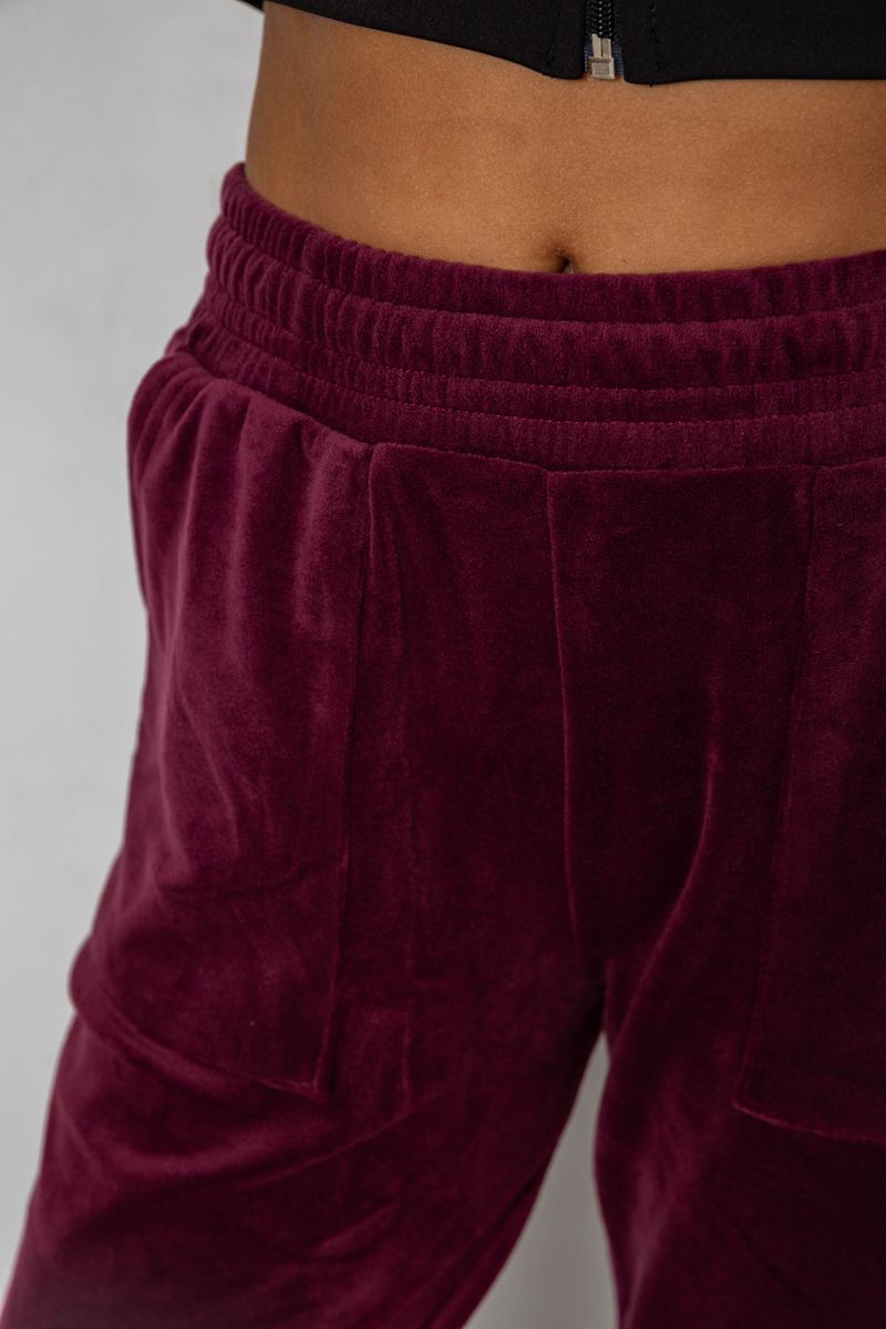 Спортивні штани велюрові жіночі на флісі, колір бордовий, 238R58647-3