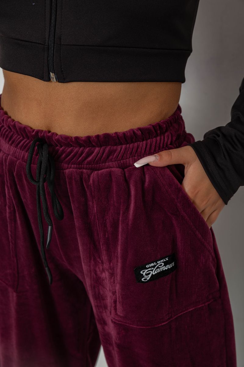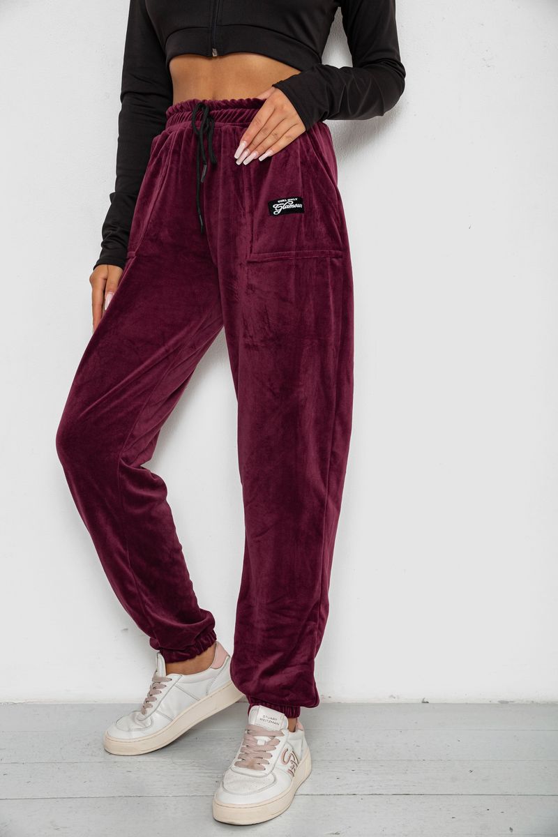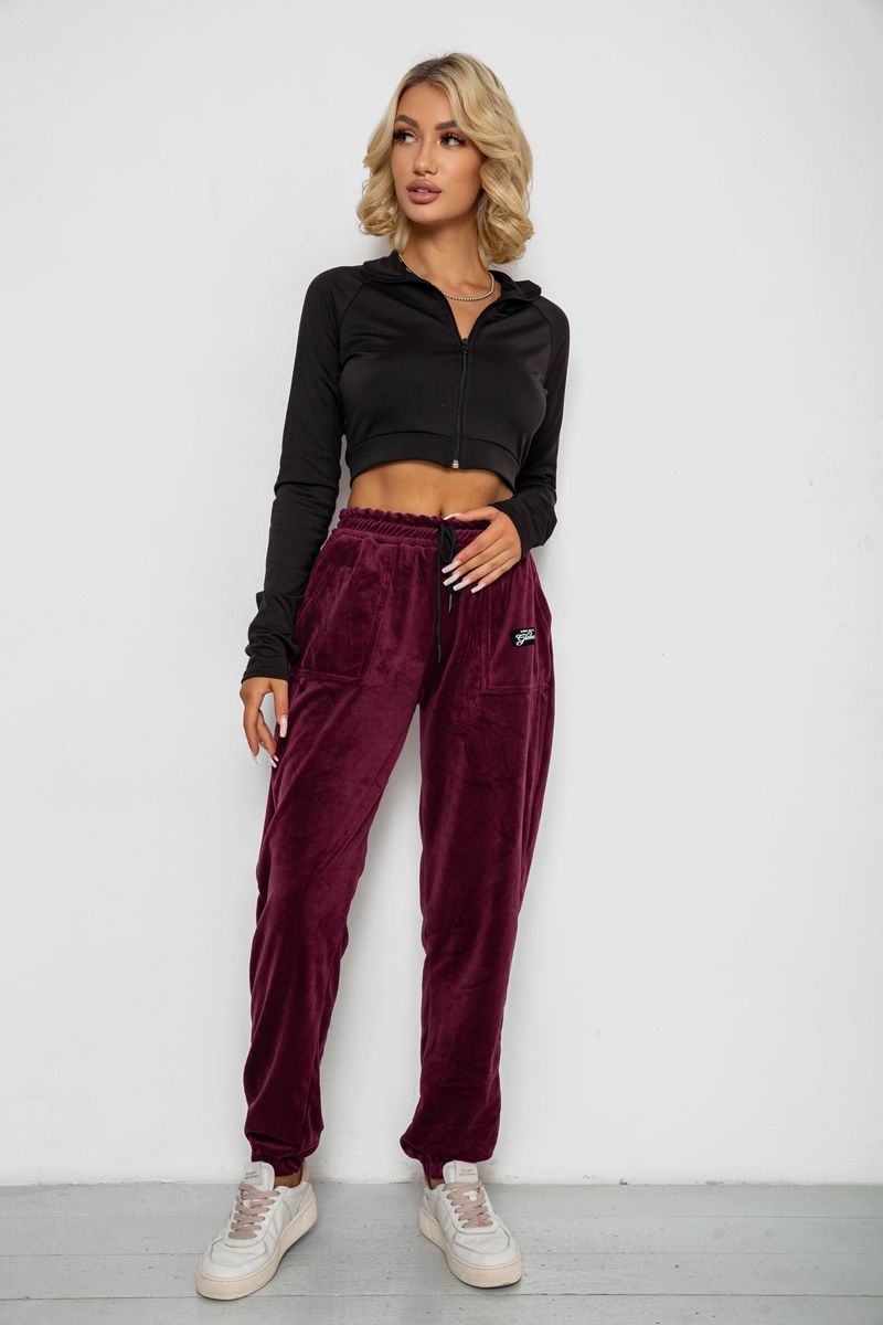 Спортивні штани велюрові жіночі на флісі, колір бордовий, 238R58649-1