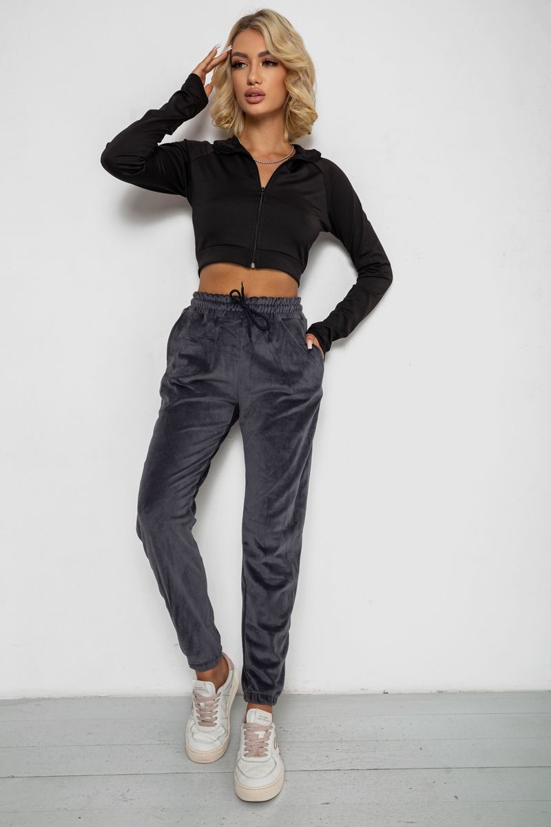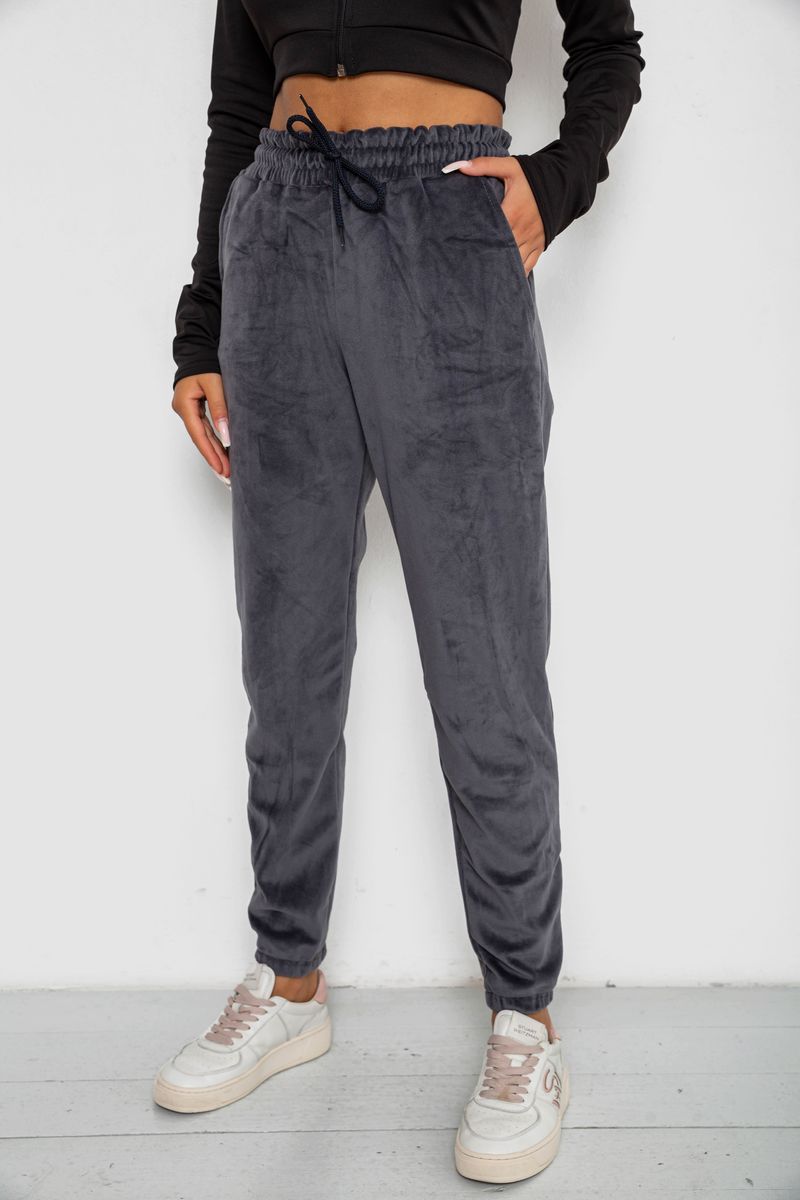 Спортивні штани велюрові жіночі на флісі, колір сірий, 238R58644