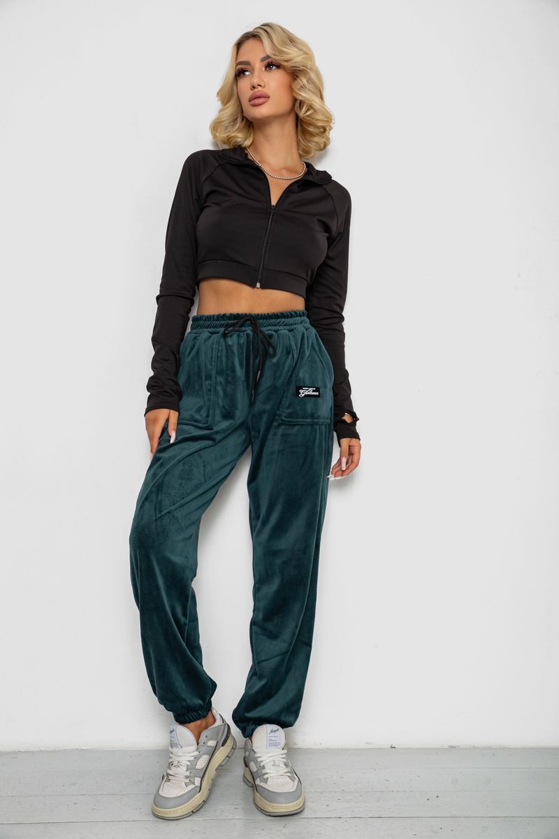 Спортивні штани велюрові жіночі на флісі, колір зелений, 238R58649-1