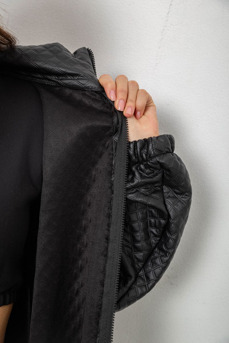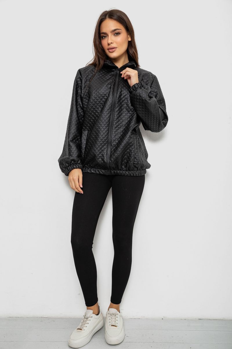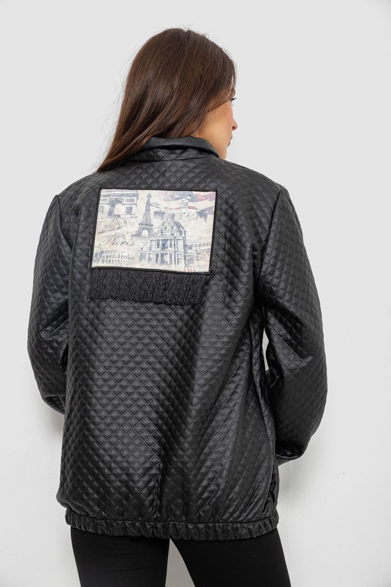 Бомбер жіночий з принтом, колір чорний, 257R72-3